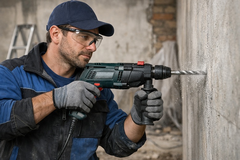 Производители и эксперты рынка прямо указывает, что для большинства домашних работ с бетоном, хорошей отправной точкой будет сетевая дрель с мощностью 1100-1500 Вт или аккумуляторная 18–20 V. Этого обычно хватает, чтобы не упираться в предел инструмента на каждом отверстии, но и не таскать в руках лишний вес.